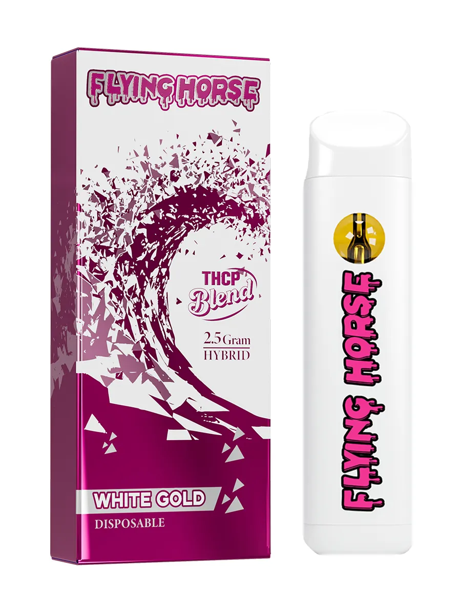 Discover the powerful effects and smooth flavor of the White Gold Flying Horse THCP Blend Disposable 2.5G. Order now from our online headshop, Olofly, and enjoy a premium vaping experience!