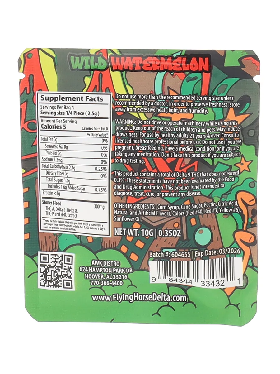 Elevate your edible experience with the Wild Watermelon Flying Horse Stoner Blend Infused Gummies 1200MG. These gummies are designed for those who seek a potent, flavorful, and convenient way to enjoy cannabinoids. Order now from our online headshop, Olofly, and enjoy fast shipping and exceptional customer service.